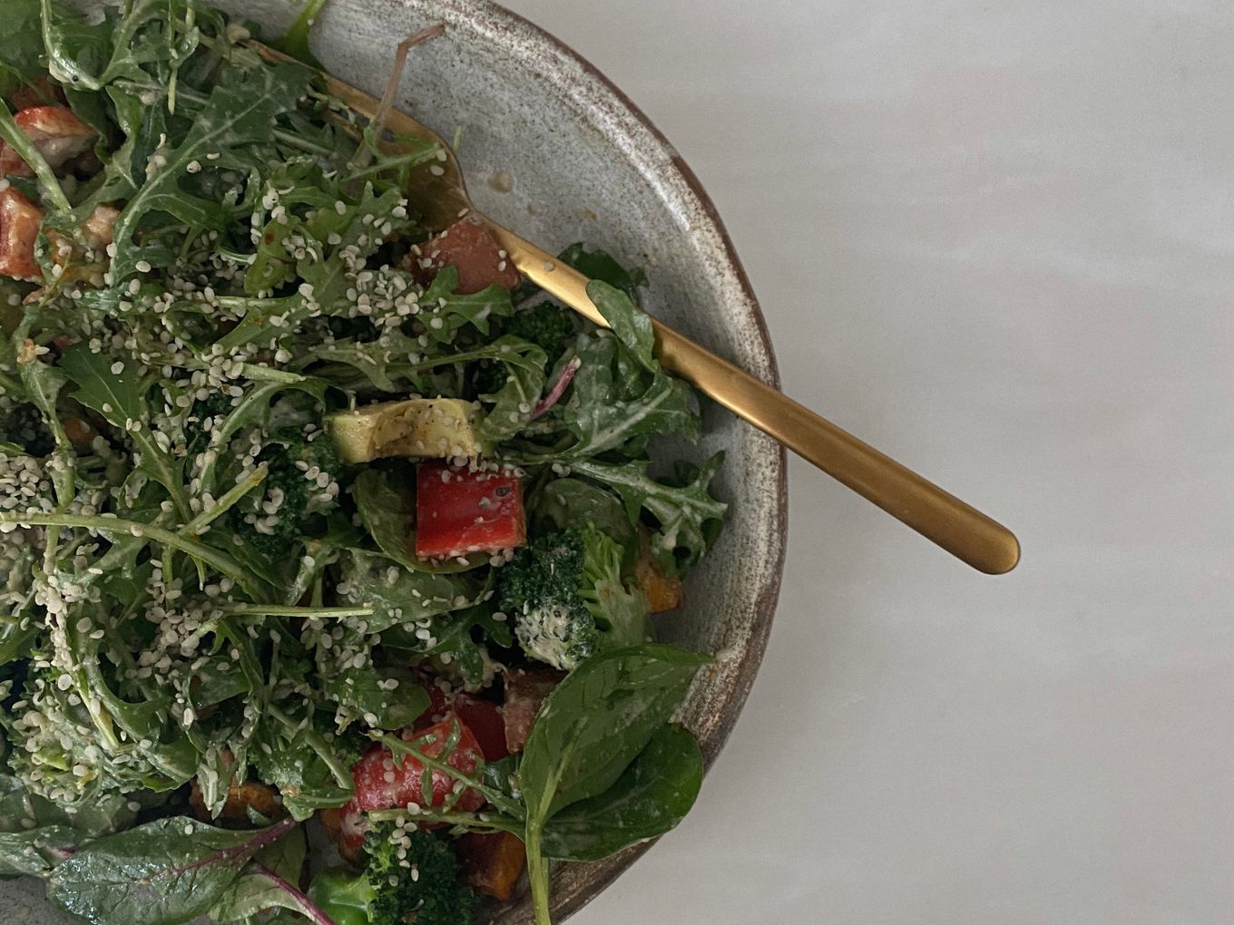 Сегодня мы делимся с вами рецептом зелёного салата с запечённым бататом и хрустящий нутом от фуд-энтузиастки Яны Погребняк. Вот, что создательница сама говорит об этом блюде: "Это очень просто и безумно вкусно! Вообще, это такой салат-конструктор, где всегда можно менять овощи, зелень и соус, главное — воображение".